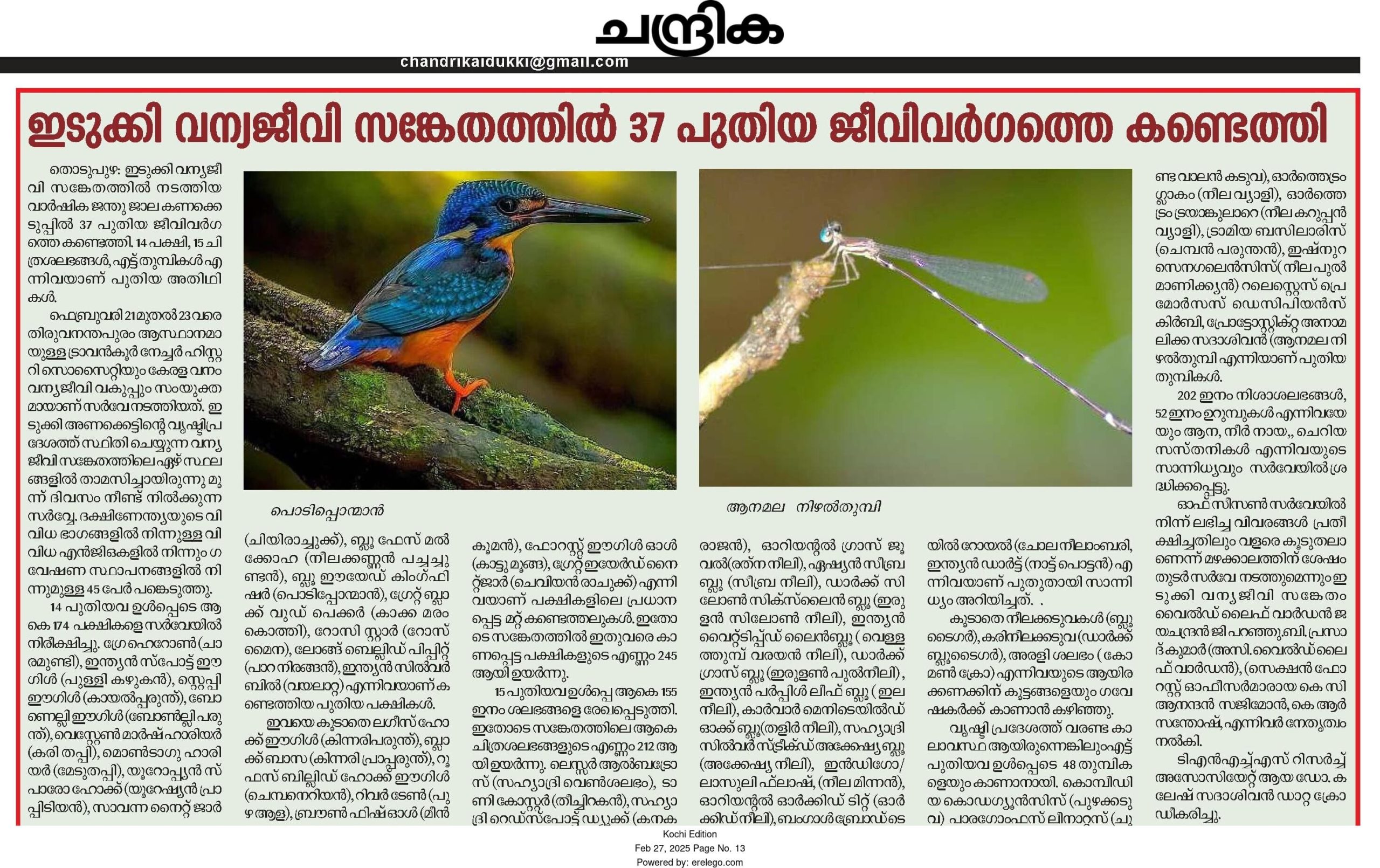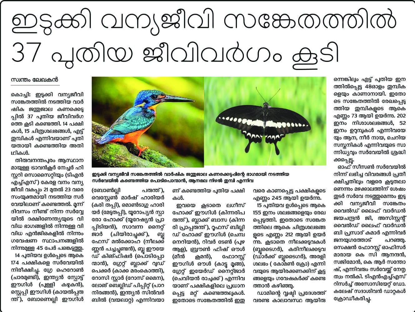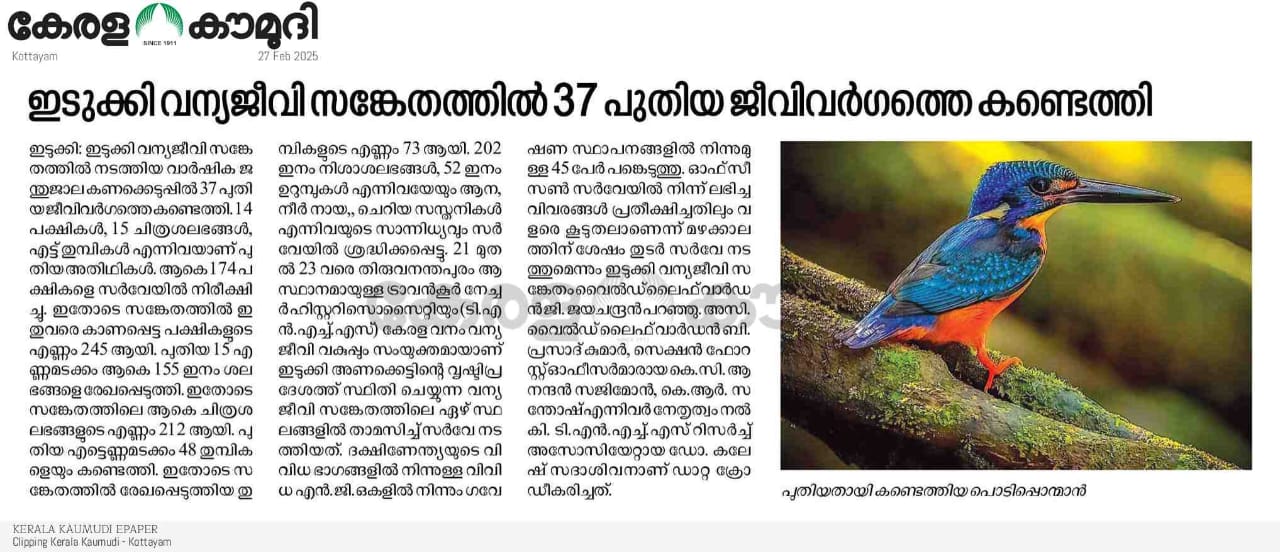 Survey at Idukki Wildlife Sanctuary concluded with 37 additions